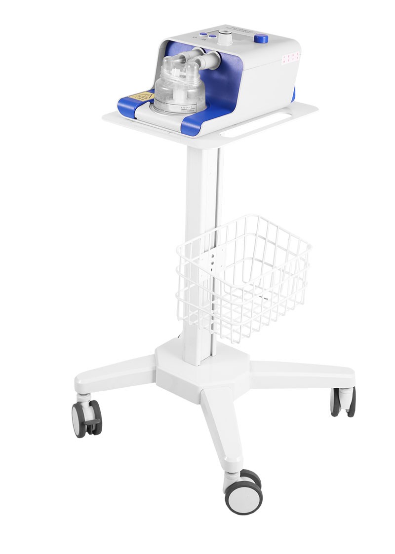 通過內(nèi)置的渦輪風(fēng)機(jī),將空氣和氧氣充分混合,經(jīng)過加溫加濕后按一定的氧濃度配比,輸送到患者肺部深處,從而改善氧合、維持氣道生理環(huán)境。
