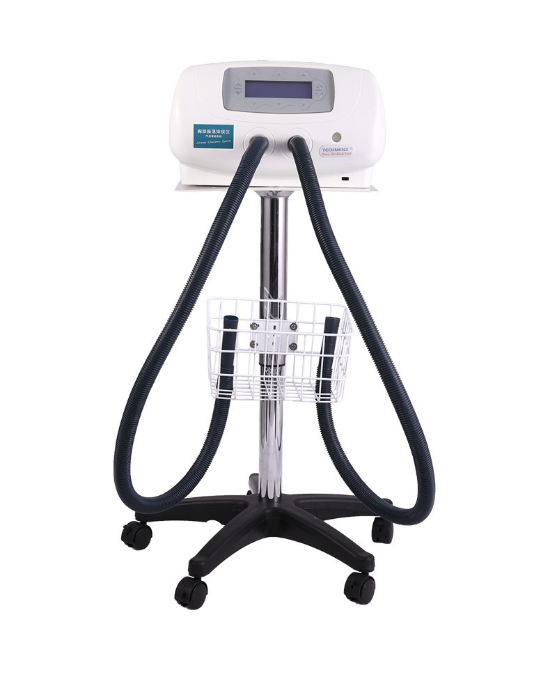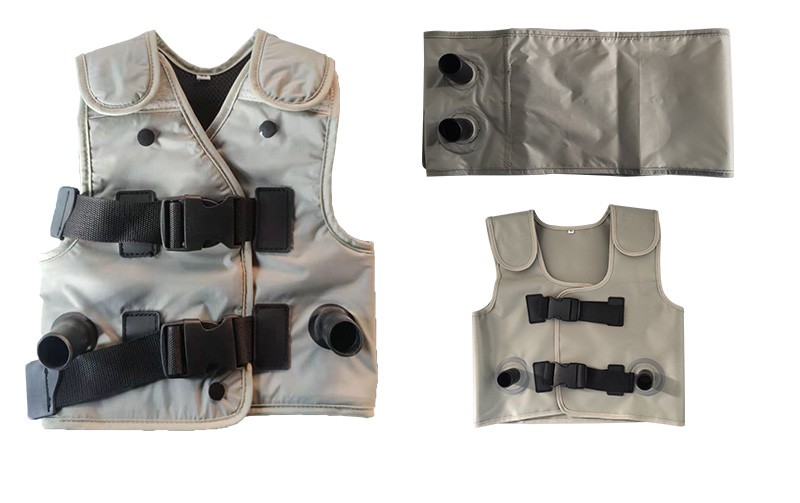 背心式排痰機作用原理: 通過模擬正常生理咳嗽的原理,將患者所穿專用充氣背心用導(dǎo)氣軟管連接到高速脈沖泵上,并快速地充氣和放氣,使患者胸壁發(fā)生有規(guī)律的舒張運動,患者氣道和肺部發(fā)生自主的震顫氣流和定向引流力,促使呼吸道粘液及各個肺葉深部代謝物松弛,液化、脫落;并在定向引流力的作用下將已液化脫落的代謝物按照選擇的方向(如細支氣管→支氣管→氣管)排出體外。